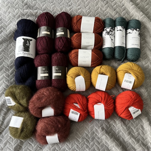 Ignoring the yarn previously mentioned, I purchased 3x Filcolana Arwetta in 146, 3x Sandnes Garn Sunday in 3554, 3x Knitting for Olive Merino in Mustard, 3x Knitting for Olive in Blood Orange, 2x Walløe Fine Kid Mohair in 26, and 2x Rauma Garn Tjukk Mohair in 161. A bit of a hodge podge of yarn acquisitions, but I’m quite happy with everything I picked up and have already started a Musselburgh with the Filcolana Arwetta.