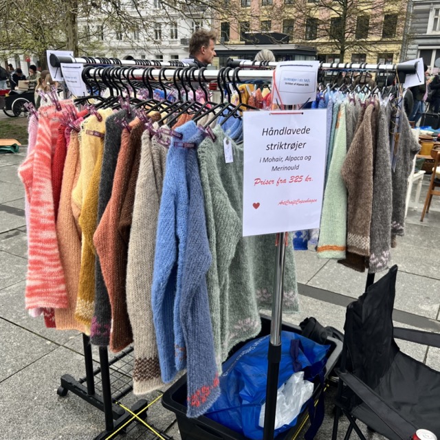Somewhere between Uldstedet and Kraess, we happened upon a flea market in the Israels Plads. There were stalls of vintage clothing and homewares along with some very questionable art… But I thought it was so very cool and so Danish to see handknits for sale!