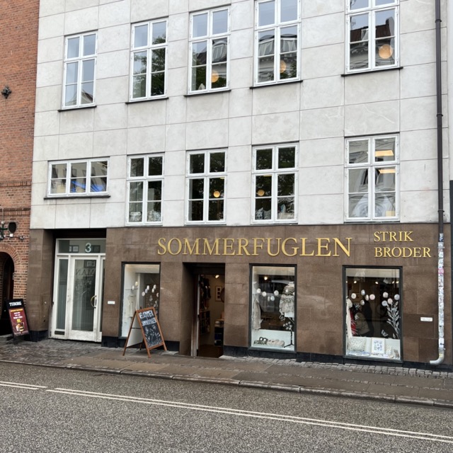 So, getting down to it… On Good Friday, I was able to make it to Sommerfuglen and was promptly overwhelmed and unprepared. I’d say I spent maybe 25 minutes inside before calling it. I was actually not feeling 100% after traveling (even though it wasn’t that big of a trip, I think I was overtired), so I took some photos and confirmed they would be open on Tuesday so we could come back after I had time to think about what I wanted. My mom is a huge cross stitcher and had requested anything cross stitch and Danish. Sommerfuglen had some patterns and kits (more needlepoint and embroidery than anything) but nothing that was her style, so I left that. They did however had a wall of Danish embroidery thread so I grabbed a couple primary colours for her to use in some future project.