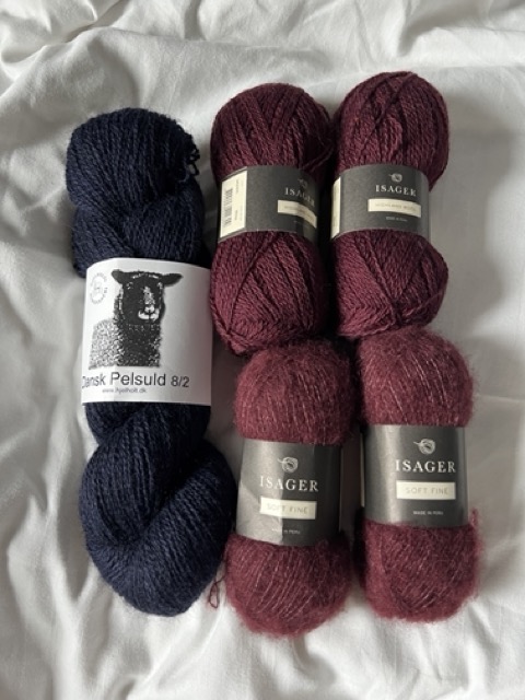 Yarn acquisitions from Uldstedet include a skein of Hjelholts Uldspinderi Dank Pelsud 8/2 in what I am nearly certain is in the shade Marine. I also nabbed two skeins each of the Isager Soft Fine in 36 and Highland Wool in Wine. These I think will be held together for an Oslo Hat or similar… Don’t hold me to that.